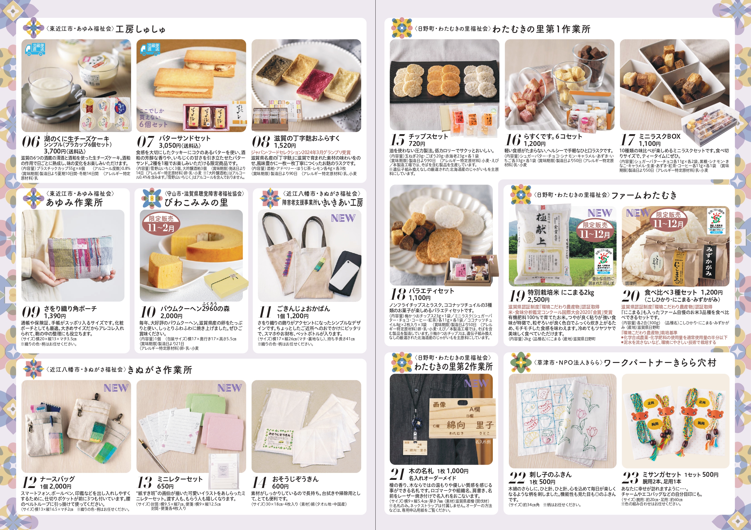 きょうされん滋賀支部では、毎年県内会員事業所の商品を集めたオリジナルカタログを作っています。